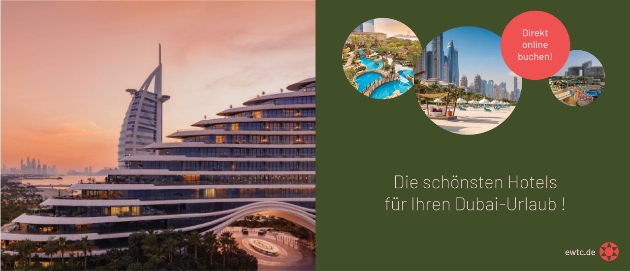 Luxuriöser Badeurlaub, spannender City-Trip oder perfekter Familienurlaub: Bei EWTC finden Sie ein erstklassiges Hotel-Angebot für Ihren Urlaub in Dubai. Buchen Sie jetzt die besten Hotels & Resorts zu attraktiven Konditionen direkt online unter ewtc.de!